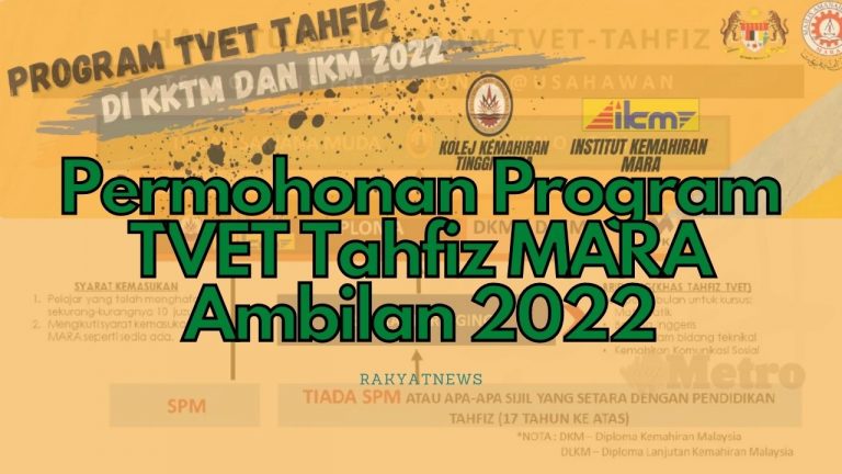 Permohonan Program TVET Tahfiz MARA 2022 kini dibuka untuk semua pelajar yang berminat bagi melebarkan lagi ilmu dalam bidang al-Quran …