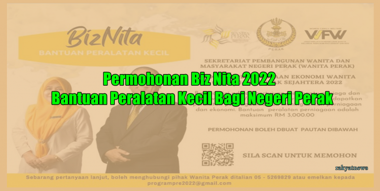 Permohonan Biz Nita 2022 . Untuk makluman , Biz Nita adalah bantuan peralatan dan bantuan tunai one-off yang disalurkan khusus …
