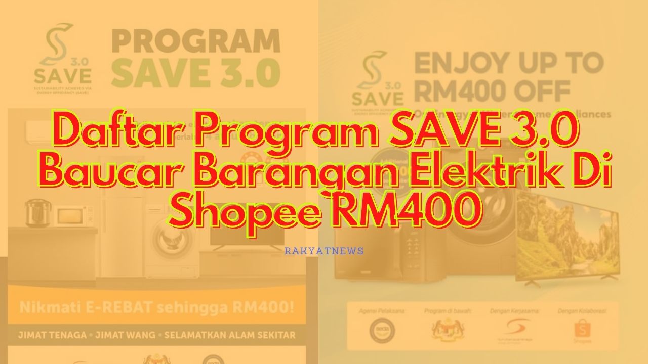 Daftar Program SAVE 3.0. Program SAVE 3.0 ialah program pemberian rebat maksimum RM400 untuk isi rumah yang membeli barangan elektrik di Shopee dan Lazada. Bagi mereka yang belum mendaftar, anda boleh mendaftar dalam Program SAVE 3.0.