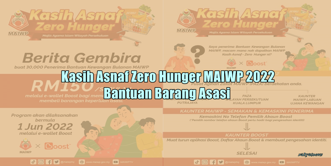 Bantuan Kasih Asnaf Zero Hunger MAIWP 2022 ini adalah bantuan yang diwujudkan bagi membolehkan penerima bantuan kewangan bulanan MAIWP memberli barangan asasi mereka menerusi aplikasi Boost.