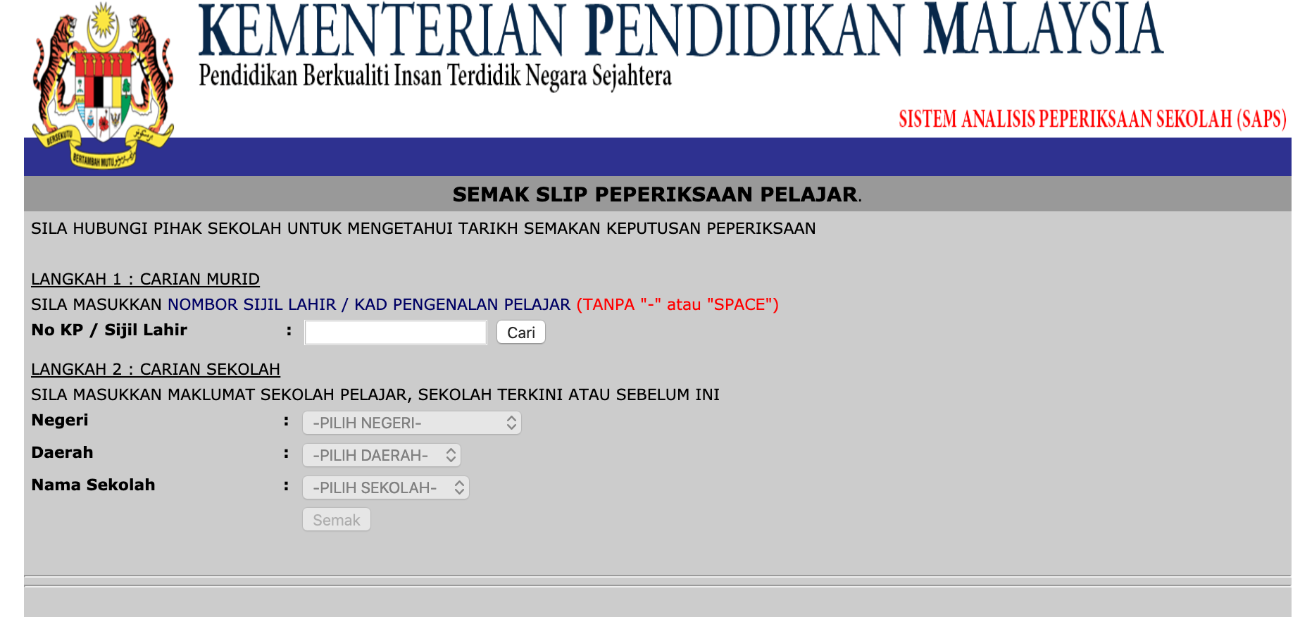 Namun untuk makluman semua yang belum mengetahui, sistem SAPS Ibu Bapa ini tidak menyokong peperiksaan besar seperti UPSR, PT3, SPM dan STPM.
