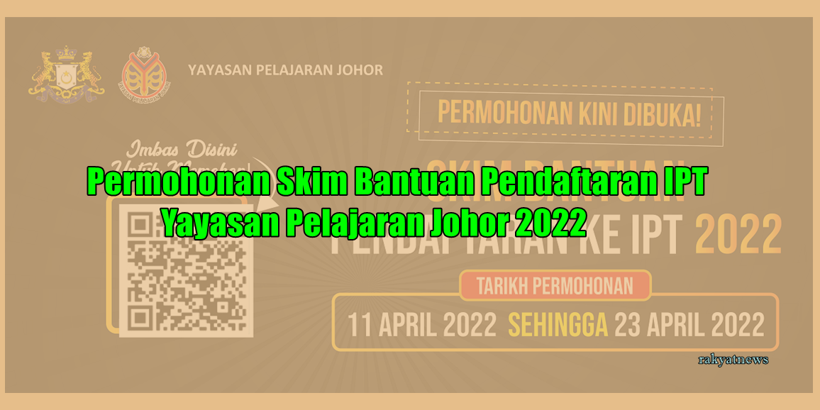 Untuk makluman, tarikh Skim Bantuan Pendaftaran IPT Yayasan Pelajaran Johor ini dibuka bermula 11 April 2022 sehingga 23 April 2022.